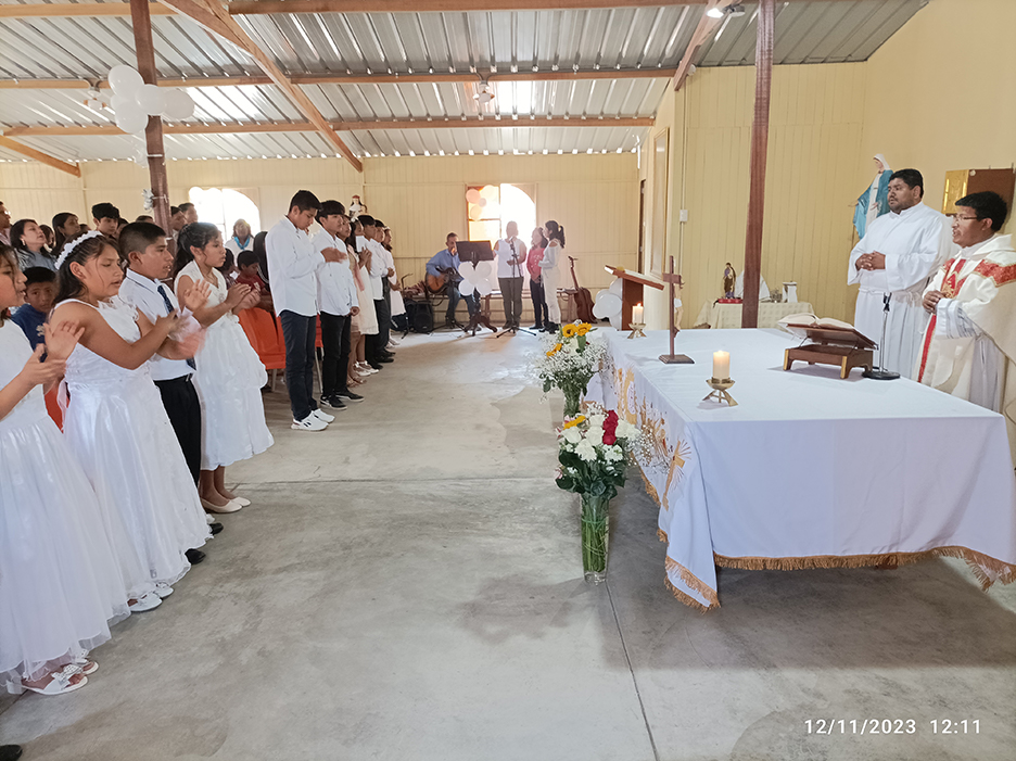 El 29 de octubre y 12 de noviembre de 2023 se celebraron los sacramentos de Bautismo y Comunión en nuestra capilla, las celebraciones fueron realizadas por nuestro párroco el padre Fernando Apfata C.